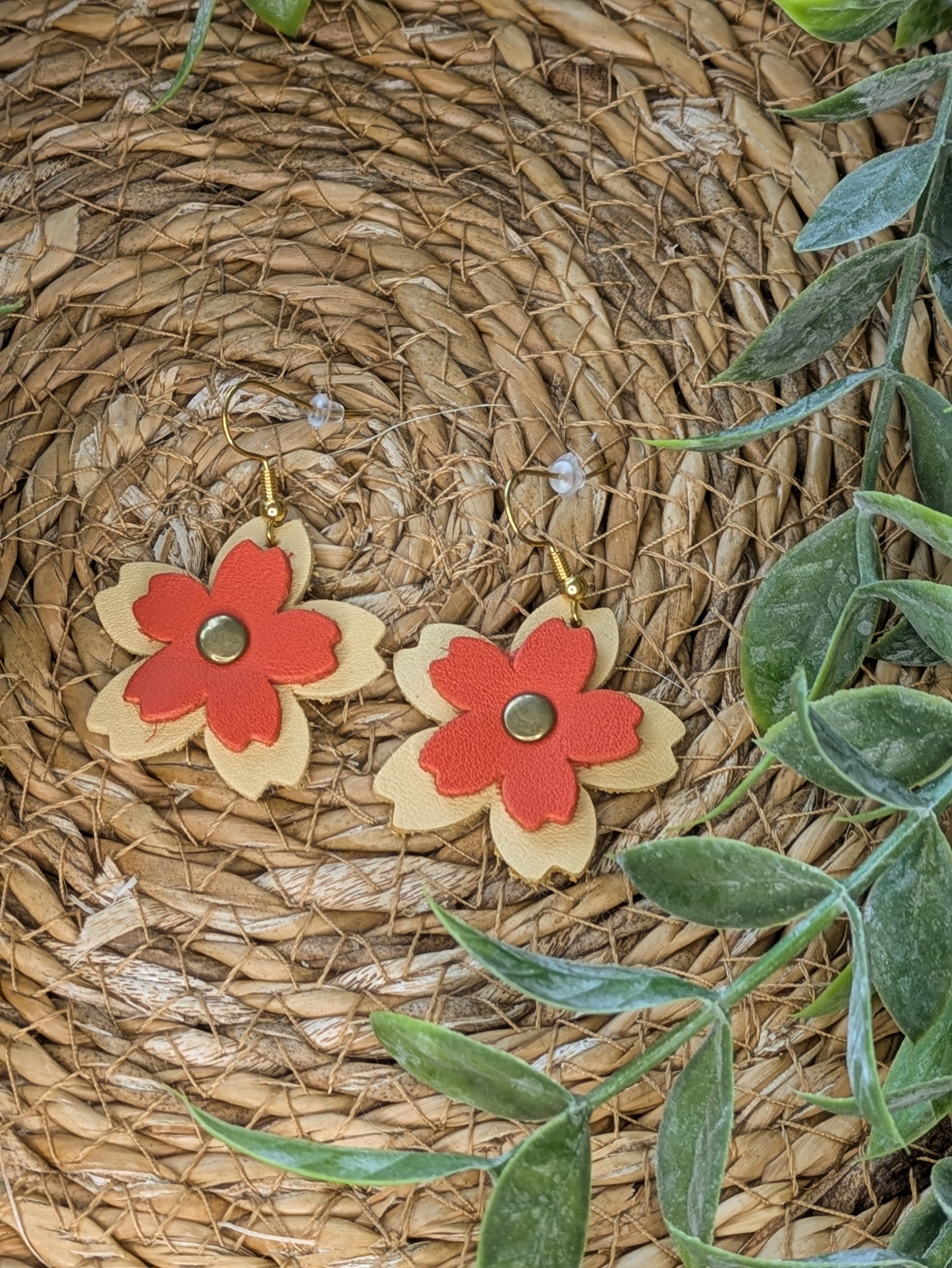 Boucles d'oreilles Fleurs de cerisier en cuir